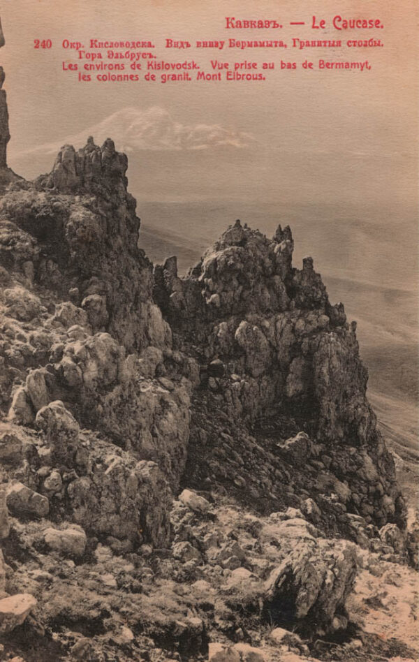 ხედი ბერმამიტის ქვემოდან, გრანიტის სვეტები. მთა ელბრუსი
