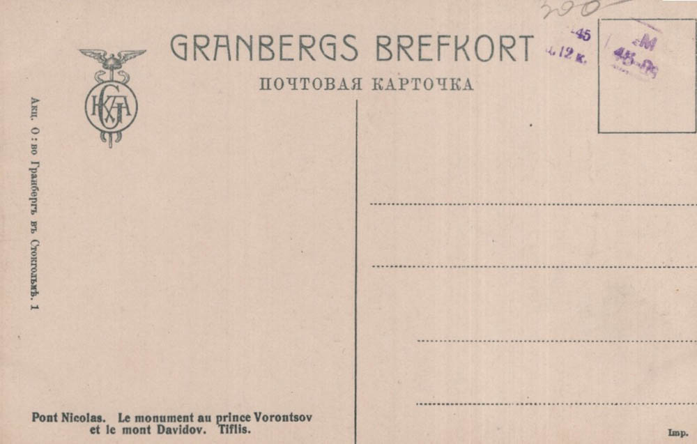 Артикул: 02385_Tiflis_Nikolayevskiy_bridge_Vorontsov_monument_and_David_Hill_ru